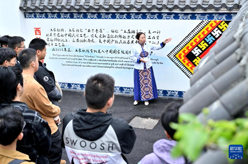 4月24日,湖北民族大學(xué)的學(xué)生在宣恩縣參加西蘭卡普主題研學(xué)活動。