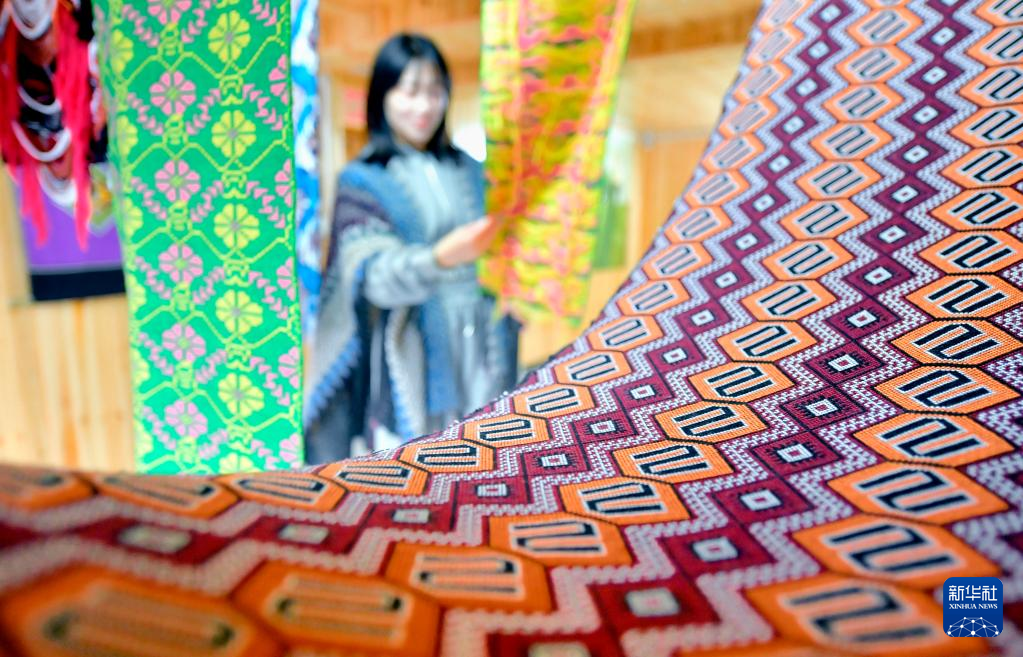 春暖花開時節(jié),湖北省宣恩縣西蘭卡普傳承基地迎來各地的學(xué)生前來研學(xué)。學(xué)生們在這里了解土家織綿文化、學(xué)習(xí)傳統(tǒng)手工技藝,感受非遺文化的魅力。西蘭卡普是一種土家織錦,色彩鮮明,紋樣美觀,其編織技藝被列入國家級非物質(zhì)文化遺產(chǎn)名錄。新華社發(fā)(宋文攝)