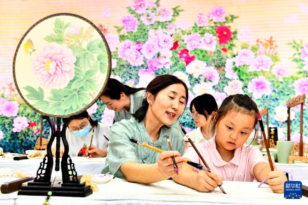 9月16日,在山東國際會展中心,來自巨野書畫院的藝術(shù)工作者姚愛紅教孩子給工筆牡丹畫上色。 第四屆中國國際文化旅游博覽會、第二屆中華傳統(tǒng)工藝大會14日至18日在山東濟南舉行。展會期間,中華非物質(zhì)文化遺產(chǎn)和優(yōu)秀文創(chuàng)產(chǎn)品匯聚一堂、各展風(fēng)采,給參觀者呈上一道文化大餐。新華社記者 郭緒雷 攝 (責(zé)任編輯:盧相?。?/span> |