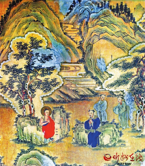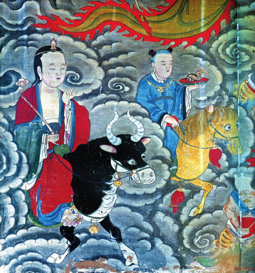 五臺山龍泉寺大雄寶殿東壁民國壁畫——仙人求度圖
