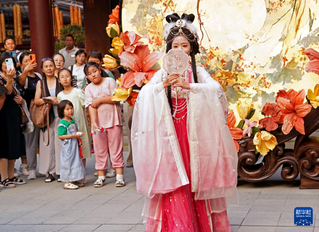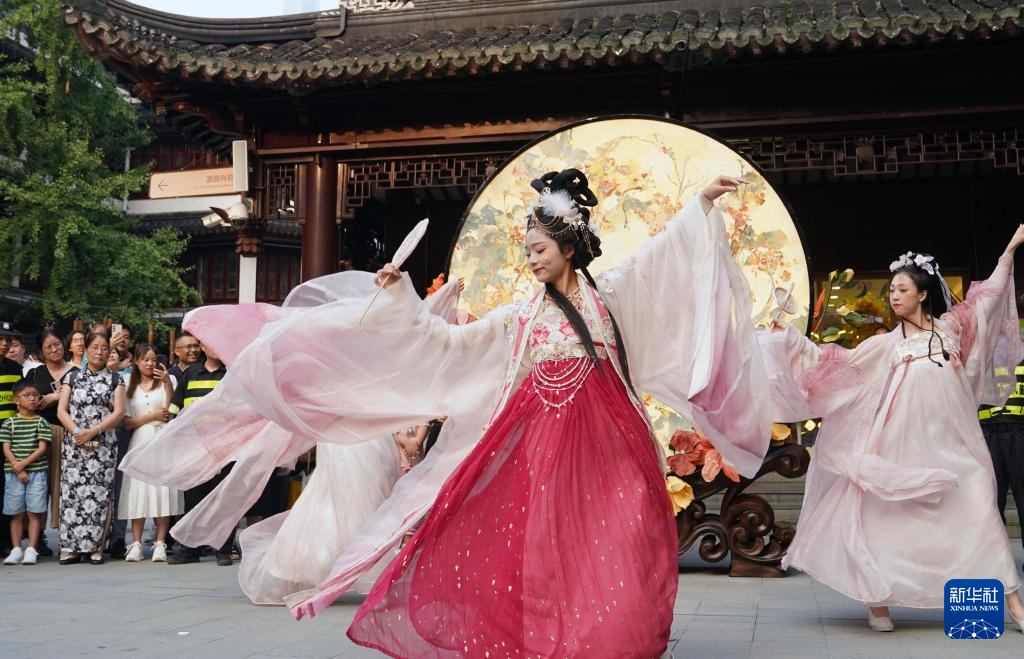 9月17日,演員在豫園商城中心廣場表演國風舞蹈。