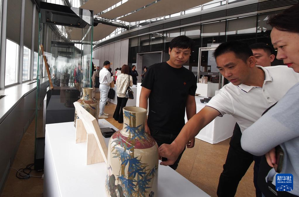 當日,第五屆上海-云南建水國際陶瓷柴燒藝術節(jié)陶瓷柴燒作品展在上海中心開幕,共展出190件原創(chuàng)柴燒作品。新華社記者 任瓏 攝