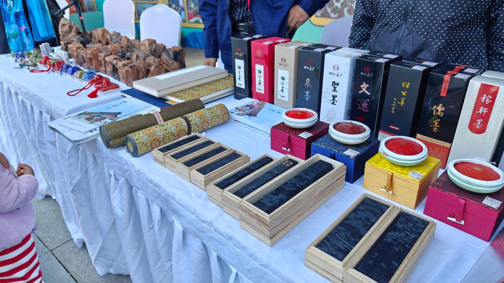 山東“秋季黃河大集”啟動現場,文創(chuàng)企業(yè)展示具有特色的文房用品。新華社記者蕭海川攝