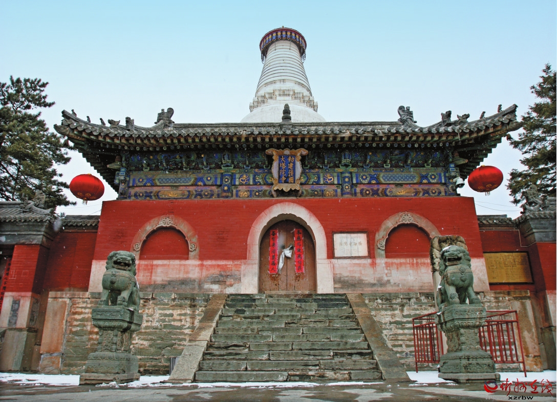 塔院寺總占地面積1.56萬平方米,北靠顯通寺,南接五爺廟,歷史悠久,五臺山的標志大白塔就位于寺中。據(jù)《清涼山志》記載:魏孝文帝再建大孚靈鷲寺,置12院。大孚靈鷲寺就是初建于東漢永平十一年的我國最早的顯通寺,到北魏孝文帝時,塔院寺為今顯通寺所屬的一個閣院,距今有1500多年的歷史。明永樂五年,明成祖朱棣對該寺進行過修繕,明萬歷七年,萬歷皇帝對該寺進行了大修,并將其從顯通寺中分割出來,成了一座獨立的寺院,名塔院寺。寺廟中軸線上有天王殿、大慈延壽寶殿、大白塔和大藏經(jīng)閣。2006年,該寺被國務(wù)院列為全國重點文物保護單位。
