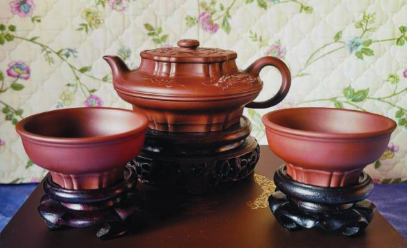 宋代詩人梅堯臣有詩云:“小石冷泉留早味,紫泥新品泛春華?!贝藟卣怯盟暮8G多年收藏的紫砂老泥為原料。值得一提的是,紫泥富含礦物質(zhì)和獨特的透氣性,讓茶水更加清醇可口。甲辰文龍壺還配了兩只龍杯,上寬下斂,簡約靈動,圈足也以筋紋裝飾,使“寸柄之壺”與“盈握之杯”和諧完美而珠聯(lián)璧合。(王琪森)