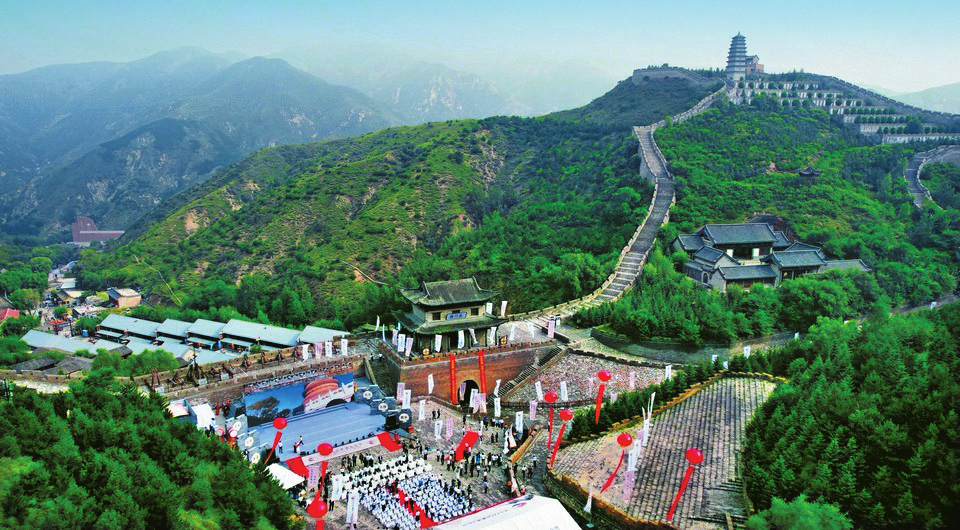 夏日的雁門(mén)關(guān)山花爛漫,翠林如海,行車穿梭在蜿蜒曲折的山路上,遠(yuǎn)遠(yuǎn)地就能望見(jiàn)雄踞在崇山峻嶺之間的雁門(mén)關(guān)關(guān)樓,連同兩側(cè)屹立對(duì)峙的山峰,如同雄鷹展翼,蔚為壯觀。