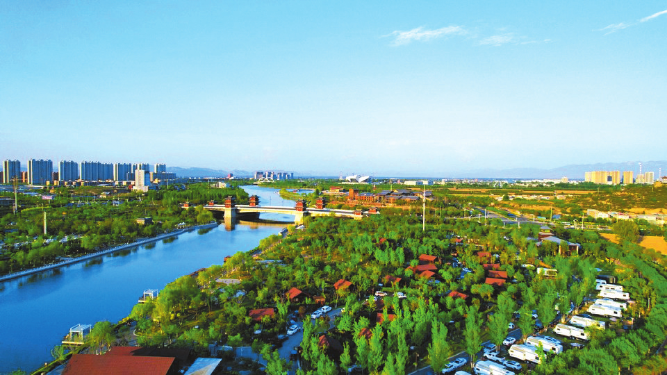 忻城北拓,云河?xùn)|流。云中河溫泉旅游度假區(qū),一水牽?jī)砂?,織錦繡于灘涂,展畫(huà)圖于平疇。