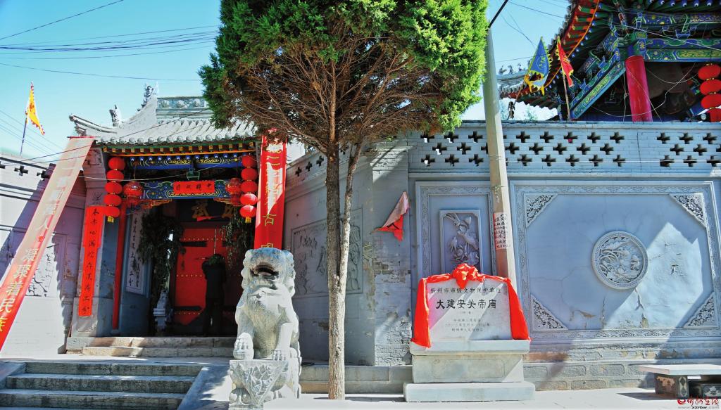 市級文物保護單位——大建安關帝廟 白建斌攝 由于人多地少,許多村民不得不另謀生路,這也推動了當?shù)丶y石開采與加工行業(yè)的發(fā)展。據(jù)史料記載,當?shù)氐募y石開采可追溯到漢代。到了清代,紋石開采加工已成為大建安村百姓農(nóng)閑時的主要生計。中華人民共和國成立后,村里辦起了紋石加工廠,時至今日,采礦業(yè)和手工業(yè)依然在大建安村經(jīng)濟領域占據(jù)重要地位。 人文歷史 (一)文物古建 在大建安村中央有古建筑——大建安天王殿, 始建年代不詳,現(xiàn)存為明代建筑。天王殿坐北向南,占地面積約54平方米。面寬三間,進深四椽,懸山頂,灰瓦布頂。柱頭斗拱把頭交項造。殿內徹上明造,用材規(guī)整,隔架科斗拱,丁樺抹亥斗拱,合踏雕成云形。 大建安村名源于大建安寺,此寺建于北魏,位于村南。在甘肅敦煌莫高窟第61窟,繪有一幅有宋代大建安寺的五臺山圖,從圖中可見當時大建安寺清雅靜穆、土木華章。明正德九年,由高僧明公山主持,于村中重建寺廟。民國初年,被改為沱南兩級小學。解放后,一度為村中電磨坊用地。2002年,寺廟被重新修建。 村西有徐氏祠堂,于1928年破土新建,至1934年竣工,此后經(jīng)過多次維修。祠堂一進兩院,占地面積815平方米。正南有高大照壁一座,左右儀門各一座,斗拱九踩,小懸山頂,灰瓦布頂。大門寬三間,深四椽,硬山頂,灰瓦布頂,中置板門一合,上書“徐氏宗祠”。東西兩側居中各有大門,兩門對稱,照壁兩側兩個古牌樓的牌匾,內外都有木刻草書,東側牌匾外書“報本”,內書“追遠”,西側牌匾反之。正廳門懸“祖德宗功”大匾,字體渾厚,與門匾“徐氏宗祠”均為當時書法大家趙昌燮所書。2003年11月,五臺縣人民政府公布徐氏祠堂為縣級文物保護單位。 (二)民風民俗 五臺縣民風淳樸,大建安村亦如是。每年農(nóng)歷六月二十四有趕廟會的傳統(tǒng),盛傳有“四大會、八小會、七十二個乜乜會”,大都因百姓祈求風調雨順而形成。過會的村鎮(zhèn)搭戲臺,唱大戲,殺豬宰羊作食,邀親呼朋來趕會。古時廟會內容各有特色,如今已演變?yōu)橐晕镔Y交流為主。 大建安廟會眾多,如今以伏水會最負盛名。大建安的伏水會是祭水神祈雨的廟會,也是佛教文化與水神信仰交相融合的產(chǎn)物。在暑伏日前后,由包括大建安村在內的9個村落輪流舉辦。在伏水會期間,還主辦村會,邀請戲班唱戲,并請其余8村的代表共同來祈求風調雨順。同時,村民會置辦涼粉、豆腐等特色食物招待來賓。在大建安人看來,伏水會就如同節(jié)日一般。