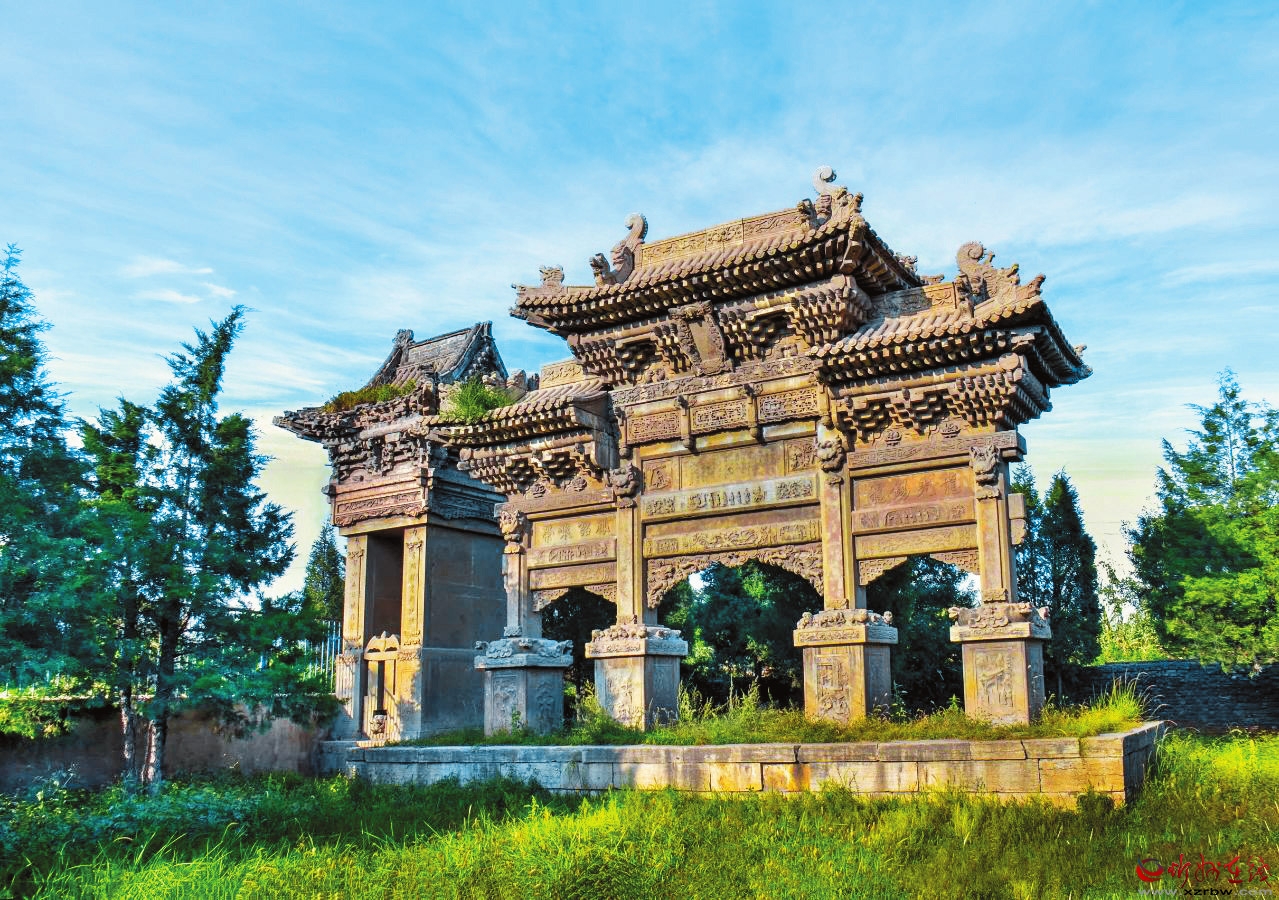坐落于村中的朱氏牌樓是晚清中儀大夫、陜西延榆綏兵道加鹽運使武訪疇為其母所修的節(jié)孝牌坊。它不僅見證了朱氏家族的輝煌歷史,也反映了當時社會的文化風(fēng)貌,承載著豐富的歷史文化內(nèi)涵,為第八批全國重點文物保護單位。牌樓有主坊和配坊兩座,主坊矗立在村內(nèi)南街,面寬三間,四柱三樓,重檐歇山頂,高近11米、寬15米。欄板內(nèi)剔底雕刻成一幅幅人物故事圖案,霸王柱間鏤雕丹鳳朝陽。匾形走馬板上書“柏舟矢志”“竹柏流芳”各四字。牌坊下檐明間置匾一塊,書“圣旨”二字,兩次間匾書分別為“懿范”“徽音”。配坊在村南,高8米有余,四柱三門,單檐歇山頂,規(guī)模略小,造型風(fēng)格與主坊一樣,皆為石雕藝術(shù)精品。