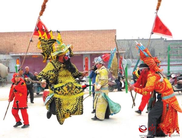 把古代戰(zhàn)爭場面演練成劇,表現(xiàn)多為騎兵對戰(zhàn),故稱為大馬社火。今年春節(jié)期間,定襄北社西村大馬社火被錄制成視頻上傳后,成為最受歡迎的鬧紅火視頻之一,人們紛紛轉載,贊不絕口。剛剛過去的元宵節(jié),大馬社火也是定襄鬧元宵不可或缺的重頭戲,北社西村眾多村民自發(fā)組織起來耍社火,表達祈福驅邪,對風調雨順、豐產增收的祈愿,形成了一道獨特的傳統(tǒng)民間文藝風景,還吸引了山西省民間文藝家協(xié)會專家現(xiàn)場指導,舉行了民間民俗文化調研座談會。