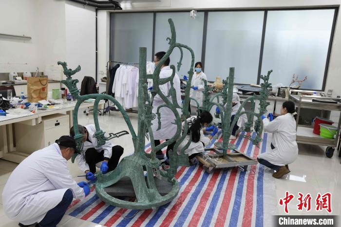 青銅神樹復制品制作現(xiàn)場。三星堆博物館供圖