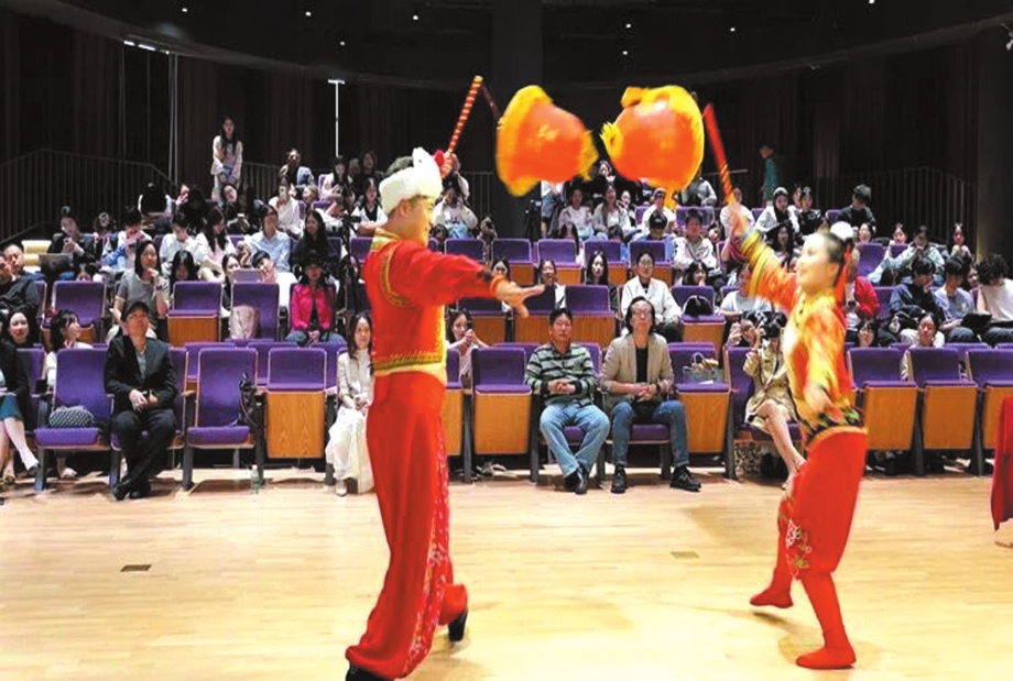 活動現(xiàn)場,藝術(shù)團團長劉延鳳作為主講人,將黃河岸邊的千年回響娓娓道來。她從“戶有弦歌新治譜”的記載,講到被列入國家級非遺的榮光;從高亢遼闊、自由奔放的“山曲”風(fēng)味,解析融合三省民間音樂元素的“二人臺”小戲的獨特魅力。多位優(yōu)秀演員聯(lián)袂登臺,他們用精湛的技藝將這份厚重的文化遺產(chǎn)鮮活呈現(xiàn)。市級非遺代表性傳承人鄔光演唱的《放羊漢唱起爬山調(diào)》,一聲出口,仿佛將黃土高原的溝壑縱橫與黃河的奔騰不息盡數(shù)帶到現(xiàn)場;優(yōu)秀青年演員王佳、楊慧、鄔強等演繹的《河曲人愛把山曲唱》《打藍靛》《壓糕面》等多首河曲民歌二人臺的經(jīng)典曲目與劇目,展現(xiàn)了民間生活的喜怒哀樂,濃郁的鄉(xiāng)土氣息與真摯情感深深打動了在場師生。