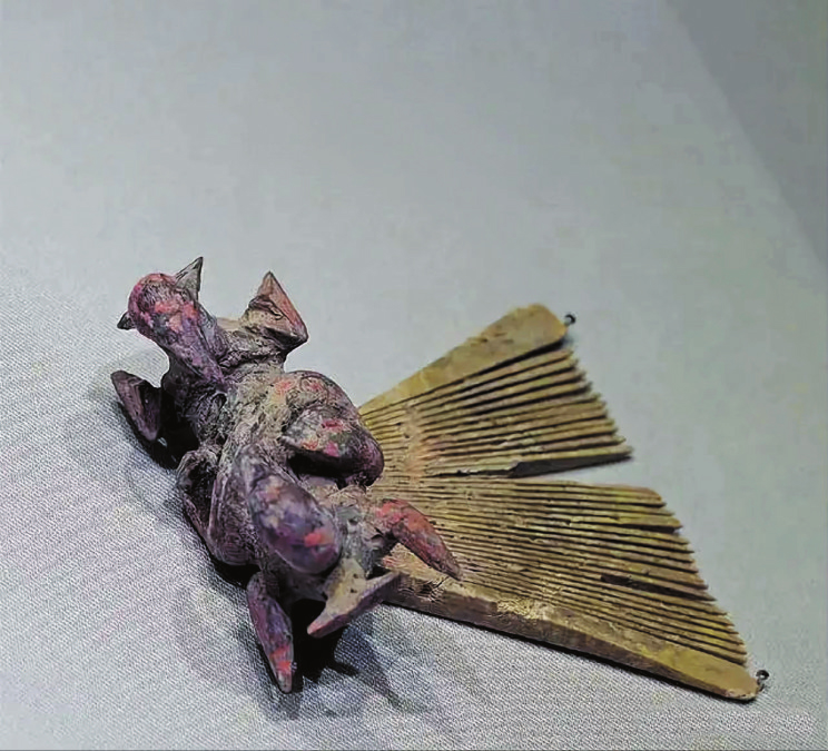 從北白鵝墓地500多件文物中精選出來的骨梳、銅盒、飾品等,大小不一、形態(tài)各異,浸潤著時光的痕跡。銅盒里面的膏狀物經(jīng)檢測為化妝品,古代女性妝容有三種顏色:白粉覆臉、黛黑描眉畫眼、朱砂或胭脂涂抹口紅。從骨梳來看女性裝飾,春秋時期已經(jīng)有骨笄等束發(fā)工具,沈從文編的《中國古代服飾研究》中也提及女子成年“及笄”。臨汾隰縣瓦窯坡墓地出土的東周骨梳,上下兩面榫卯對應,骨梳背上木質榫接左右對稱有一對張開翅膀的鳥。周代服飾主要為上衣下裳、上衣右衽,衣服材質多是皮毛、麻、葛等。此外東周時期,青銅鏡制作工藝日趨精美,使用頗為普遍。綜合這些元素,得以想象鏡中的燕姬著禮服、袍、裙、冠飾、玉珠等,或見烏黑的發(fā)髻露出一對展翅欲飛的鳥兒,顯現(xiàn)古代女性別致的嫵媚。