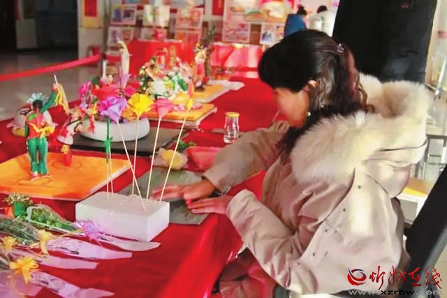 原平市北方現(xiàn)代雙語(yǔ)學(xué)校的老師展示面塑技藝