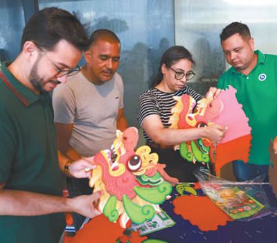 2月3日,巴西民眾在累西腓春節(jié)廟會活動現(xiàn)場體驗(yàn)制作手工龍頭。本報記者 陳海琪攝