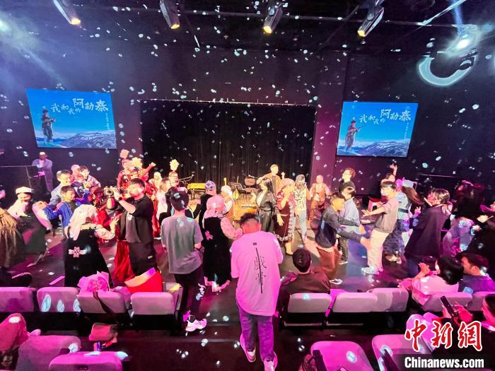 近日,哈薩克族音樂人米蘭別克演出現(xiàn)場,觀眾與音樂人一起跳起了哈薩克族舞蹈“黑走馬”。中新社記者 勉征 攝