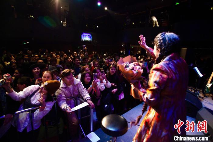 2024年1月,維吾爾族歌唱家賽努拜爾在北京演出,與現(xiàn)場觀眾互動。(“戰(zhàn)馬時代”供圖)