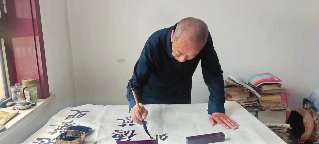 為了練字,他連手機也不買,惹得好多親朋好友找不到他。他橫下一條心,一個字可以練千遍、萬遍;一支毛筆握在手心不離不棄,天天寫,月月寫,年年寫,這一寫就寫了26年。為了寫好一個字,弄懂一個字,他不知道要練習(xí)多少遍,查多少次字典。由寫字到學(xué)文,他選擇了“四大名著”。古人筆錄者層出不群,“眼過千遍,不如手過一遍”。抄書不僅練習(xí)了書法,怡養(yǎng)性情,關(guān)鍵是補習(xí)了博大精深的中國文化。