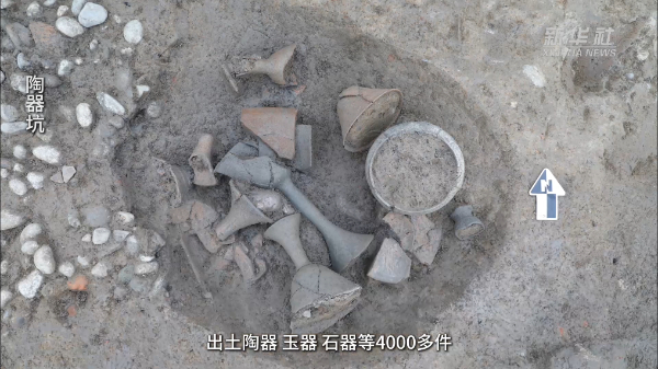 在三星堆月亮灣燕家院子附近,四川省文物考古研究院開(kāi)展考古勘探,陸續(xù)找到高等級(jí)建筑基址、灰坑、灰溝、石器生產(chǎn)加工遺跡等400多處,出土陶器、玉器、石器等4000多件。