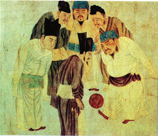 足球在中國(guó)古代被稱(chēng)為“蹴鞠”,又名“蹋鞠”,“蹴”“?!币鉃樘?,“鞠”即球,連在一起便是踢球之意。蹴鞠相傳是黃帝發(fā)明的軍事訓(xùn)練項(xiàng)目,西漢劉向《別錄》有言,“蹴鞠,黃帝作,蓋因娛戲以練武士”,通過(guò)踢球鍛煉士兵腿部力量??脊艑W(xué)家推測(cè),黃帝時(shí)期的足球極有可能是石球。黃河流域山西、陜西、河南的新石器時(shí)代遺址中,出土過(guò)很多磨制光滑的石球,一定程度上印證了黃帝軍隊(duì)踢石球的推測(cè)。