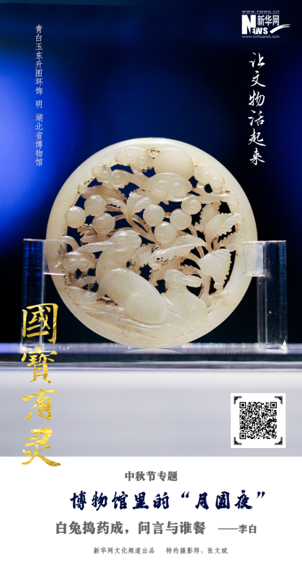 編者按:又是一年中秋節(jié)到,值此佳節(jié)到來之際,新華網(wǎng)文化頻道“國寶有靈”文化IP特推出中秋節(jié)專題《博物館里的“月圓夜”》,精選了六件帶有月亮、玉兔等元素的博物館中的文物,并配有與月有關(guān)的詩句,制作成了海報,希望借由這些富有古老文化內(nèi)涵的國寶珍品,讓您感受到傳統(tǒng)中秋文化的魅力,為您的節(jié)日增添更多意趣,從中體悟到中華優(yōu)秀傳統(tǒng)文化的精髓所在,有所增益,有所感悟。新華網(wǎng)文化頻道在此祝您闔家團圓,幸福安康!