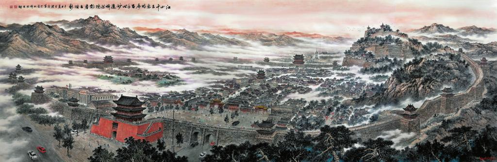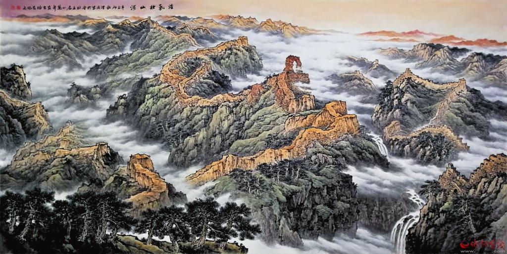 在堅持不懈的學(xué)習(xí)和創(chuàng)作過程中,殷渭凌逐漸意識到,書畫藝術(shù)有其自身規(guī)律,并不存在固定模式,對于一個書畫家來說,確定個人藝術(shù)走向非常重要,想要表現(xiàn)的主題、內(nèi)容、情感最終會決定創(chuàng)作本身的價值。也正是清楚了這一點,殷渭凌將自己的創(chuàng)作素材鎖定在熟悉和熱愛的故土上。他從家鄉(xiāng)的自然造化中選取創(chuàng)作對象,提煉感情和思想,然后加以調(diào)整、升華,最終呈現(xiàn)給觀者,讓大家看到了獨具韻味的黃河、太行、長城、古鎮(zhèn)、雄關(guān)、窯洞、高原、古剎、佛塔等。