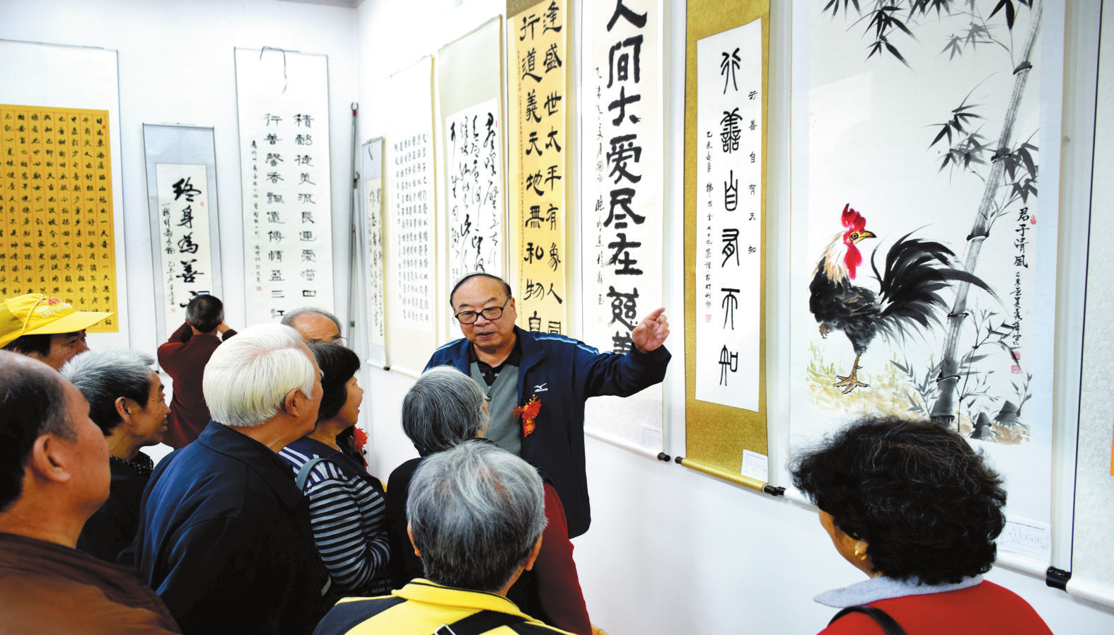書畫展現(xiàn)場,張啟明與書畫愛好者互動