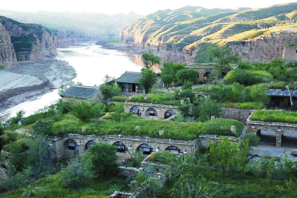 一眼望不到頭的長城從遠處山梁上綿延而來直達河邊??床灰娂ち鞅加?,聽不見黃河濤聲,清清的河水在這里悠悠徜徉盤桓。如果說長城如父親般剛強有力,沉雄穩(wěn)健,黃河如母親般溫柔親切,寬懷博大,那寺溝恰如父母懷中幸福溫婉的小孩。寺溝慵懶地在河邊梳洗自己的容顏,連同身邊的長城倒影在粼粼的河水中,展現(xiàn)出難得的田園詩般的浪漫與柔情。山上長城夯土保持完整,有青銅群雕,旌旗獵獵,似將軍正在縱馬出巡。登墩臺四望,視野開闊,長城下人家炊煙裊裊,雞犬相聞。峽谷中游船往來,馬達轟鳴聲中幾只野鴨貼著河面飛向不遠的村子,飛向?qū)Π渡窖?。寺溝,一個把塞北風光與江南水鄉(xiāng)有機融為一體的地方。