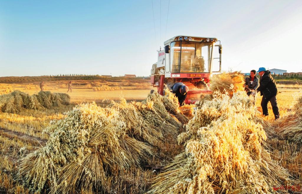 余莊鄉(xiāng)馬營村村民機(jī)械化脫粒莜麥