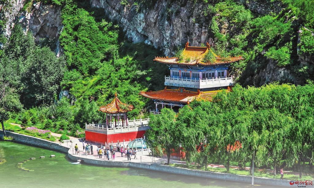 黃河水經(jīng)引黃工程注入汾河 王文君 攝 探訪汾水,卻“源”來如此 汾河上最美的地方當屬汾源。徐繼畬在《重修汾源廟樓記》中專門把汾河上兩個最美的地方——汾源和晉祠懸甕山做過對比,發(fā)出了汾源“薄一溪灌注千里,三境第一圣境也”的贊嘆。汾河的源頭叫雷鳴寺泉,素稱“三晉第一泉”。泉水從汾源閣的石縫中流出,流入閣前一個前圓后方的水塘,塘的石壁上“汾源靈沼”四個石刻大字隱約可見,雖經(jīng)風雨侵蝕,仍顯出它的遒勁揮灑?!鞍氘€方塘一鑒開,天光云影共徘徊?!惫湃藢@里甚為推崇,譽為寧武八景之一。金代大詩人元好問有詩贊道:“管涔汾源大車輪,平泉八仗琉璃盒?!睋?jù)當?shù)厝苏f,“汾源靈沼”這四個字在唐代已出現(xiàn),現(xiàn)在還有一塊唐代石碑藏于汾源閣中。這里原有水母殿和臺駘祠,后來被毀了。 汾源泉水終年流淌,寒冬不凍,荒旱不枯,其流量為每秒0.4立方米。泉水清澈見底,水底卵石粒??杀?。汾源靈沼的外壁懸一石雕龍頭,泉水通過龍口噴涌而出,瀉入碧波蕩漾、占地近百畝的汾源湖。湖內(nèi)筑有荷葉島,建有湖心亭。湖西是九龍壩,壩西又一湖名九龍湖,兩湖波光粼粼,岸柳成行。 汾源靈沼之上建有汾源閣,高15米,分三層,飛檐翹角,雕梁畫棟。一層為水母殿,二層為臺駘殿,三層為廣濟菩薩(民間稱“五爺”)殿。水母殿內(nèi)有水母娘娘塑像,其傳說與太原晉祠的水母娘娘相似,當?shù)厝朔Q二者系姊妹。有泉水自塑像下涌出,先流入一眼水井,井上設(shè)有轆轤,供游人提水品嘗。水清澈甘冽,直沁心脾,讓人現(xiàn)場感受“飲水思源”是什么味道?,F(xiàn)在這座汾源閣建于1997年,時任縣委書記郭新民書寫了“汾源靈沼”牌匾,懸掛在汾源閣上。站在閣上,憑欄遠眺,湖光山色盡收眼底,令人賞心悅目。 雷鳴寺泉,以樓子山半山腰的雷鳴寺得名。雷鳴寺坐北朝南,依山而筑,規(guī)模宏大,因汾源泉流在地下暗河波浪搏擊,聲若雷鳴,取名雷鳴寺。據(jù)說該寺始建于公元355年——385年(十六國之前秦時代),殿堂鱗次櫛比,為晉北名剎。明末兵變,毀于兵火。清朝重建雷鳴寺,文革中因在此修建化肥廠,遂將寺院全部拆毀。拆毀前的雷鳴寺,系殿宇、樓閣、廂房組成的整體建筑群,全部房舍約百余間。殿宇雕梁畫棟,樓閣朱檐金頂,配之以亭、臺,廊、榭,布局十分精巧。殿內(nèi)壁畫懸塑,栩栩如生。每年農(nóng)歷四月初八,是這里的傳統(tǒng)古會,遠近商賈云集,游人接踵,盛況空前?,F(xiàn)在的雷鳴寺建于1997年,其規(guī)模與壯觀程度雖不可與昔日相比,但今日之風光,仍然吸引著眾多的游客?,F(xiàn)汾河源頭景點眾多,為省級旅游風景名勝區(qū),是三晉兒女依戀、崇敬、向往之地。