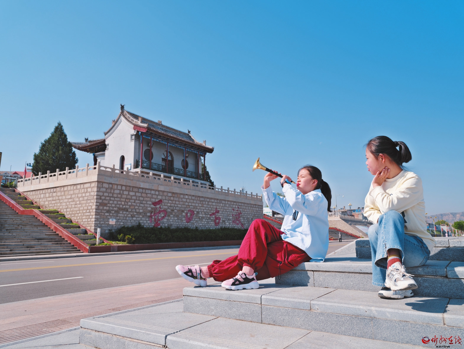 西口古渡旁吹嗩吶的女孩 張建軍 攝