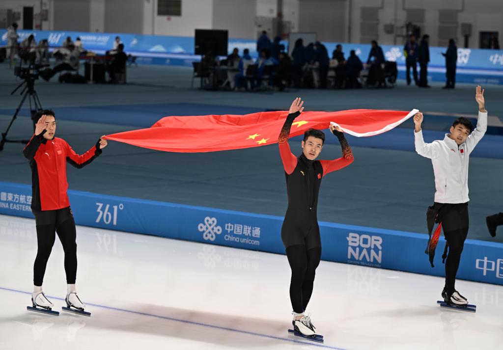 黑龍江省冰上訓(xùn)練中心速滑館里,《義勇軍進(jìn)行曲》三度奏響。當(dāng)日速度滑冰全部3枚金牌均被中國(guó)隊(duì)收入囊中。高亭宇先以0.02秒的微弱優(yōu)勢(shì)力壓日本選手森重航,奪得男子500米冠軍;又與隊(duì)友廉子文、寧忠?guī)r合作,奪得男子短距離團(tuán)體追逐金牌。女隊(duì)則又一次讓三面五星紅旗同時(shí)升起,楊濱瑜、韓梅、太智恩分獲女子3000米前三名。本屆亞冬會(huì)有三金入賬的高亭宇坦言不知道這會(huì)不會(huì)是自己最后一屆亞冬會(huì),“(這次)我的關(guān)鍵詞是努力,相信大家一起努力,中國(guó)速度滑冰會(huì)越來(lái)越好”。