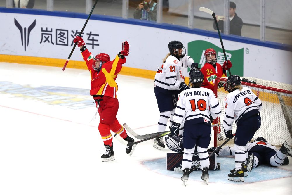 比賽伊始,雙方攻勢積極。第三分鐘,荷蘭隊(duì)打出精妙配合,科拉德門前補(bǔ)射得手,冰球從中國隊(duì)門將詹佳慧腿下滑入球網(wǎng),比分變?yōu)?:1。