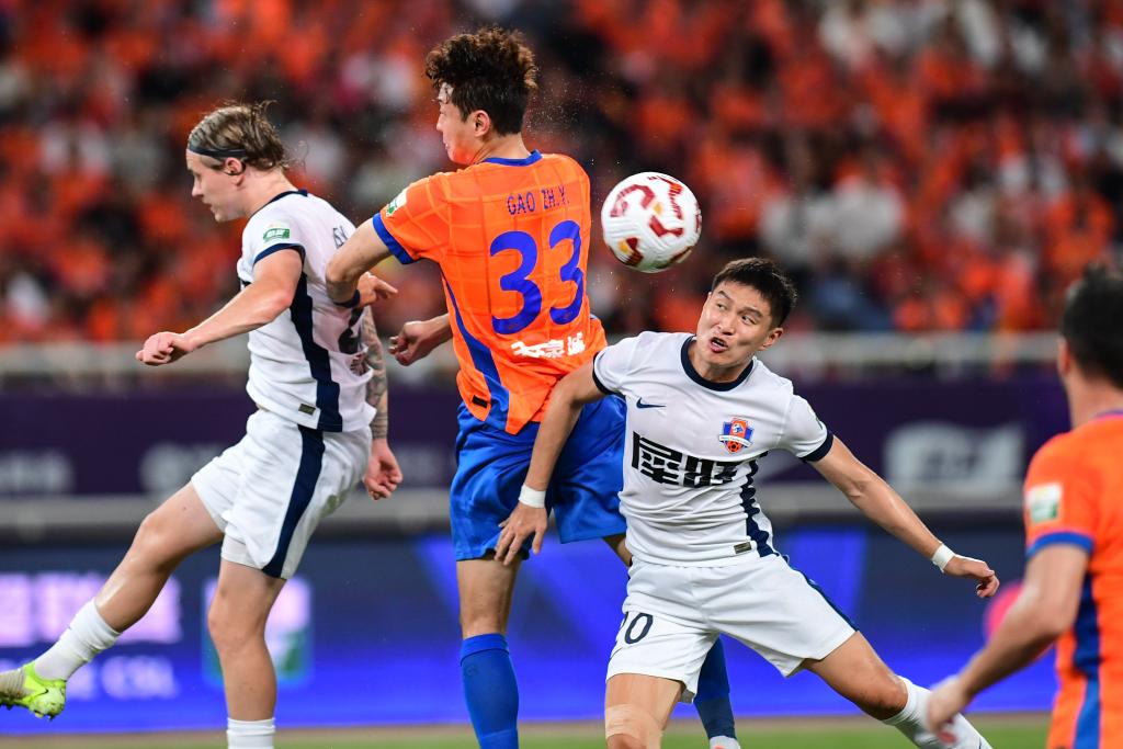 7月27日,山東泰山隊(duì)球員高準(zhǔn)翼(中)在比賽中爭(zhēng)頂。新華社記者 朱崢 攝 其他比賽中,聯(lián)賽“副班長(zhǎng)”長(zhǎng)春亞泰隊(duì)主場(chǎng)0:2負(fù)于大連英博隊(duì),云南玉昆隊(duì)主場(chǎng)3:1戰(zhàn)勝深圳新鵬城隊(duì)。 中超第19輪較量將于8月2至3日進(jìn)行。 (責(zé)任編輯:蔡文斌) |