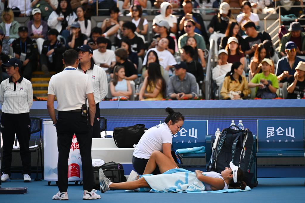 進入第三盤,諾斯科娃先聲奪人,很快建立3:0的領先優(yōu)勢。局間休息時,醫(yī)務人員上場與鄭欽文交流。短暫溝通后,鄭欽文選擇退賽,比賽就此結束。