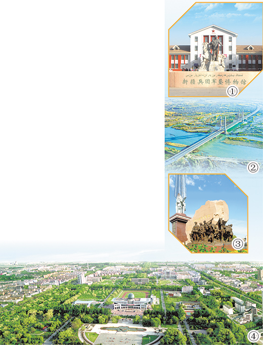 石河子市被譽為“共和國軍墾第一城”。第一代老軍墾陸振歐回憶當(dāng)時的情景,仍記憶猶新:“那時只有車馬店、賣馕的幾戶人家,除了北面蘆葦?shù)?,到處是荒灘戈壁?!钡谝淮鴪F(tuán)人喝鹽堿水、睡“地窩子”,人拉肩扛、挖渠引水、改造葦湖、開墾荒地,在荒無人煙的大漠之邊打造了一座現(xiàn)代化新城。如今,石河子市碧水繞城、綠意盎然、鳥語花香,綠蔭掩映座座現(xiàn)代化廠房。石河子崛起為新疆重要工業(yè)基地,享有“戈壁明珠”的美名?!笆幼訌囊粡埌准埰鸺?,發(fā)展到現(xiàn)在,靠的就是兵團(tuán)人艱苦奮斗、開拓創(chuàng)新的精神?!标懻駳W感慨地說。