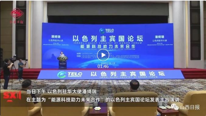 在高峰論壇發(fā)表主旨演講;與太原市市長共同種植友誼樹30棵并樹立紀(jì)念碑,寓意中以30年合作取得豐碩成果;出席以色列分論壇與能源產(chǎn)業(yè)B2B對接會(huì)......作為以色列駐華大使,潘綺瑞和她所代表的以色列“主賓國”之旅很是繁忙。