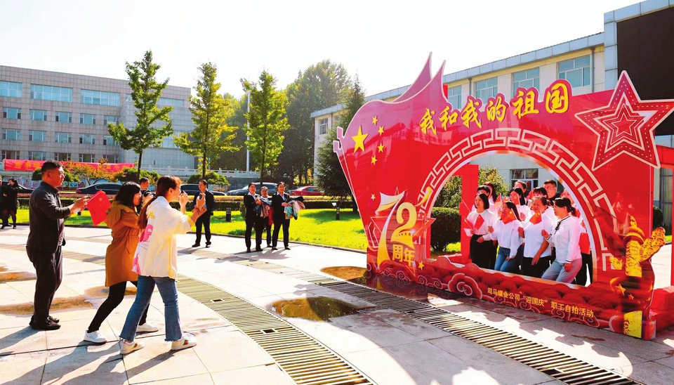 在中華人民共和國成立72周年到來之際,潞安化工集團(tuán)司馬煤業(yè)有限公司舉辦了“奮斗百年路·啟航新征程”職工自拍活動并設(shè)置“節(jié)日合影墻”,營造出濃厚的節(jié)日氛圍。(秦鴻彬攝)