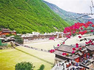 10月2日,四川省甘孜藏族自治州,游客在參觀瀘定橋。 本報記者 王明峰攝