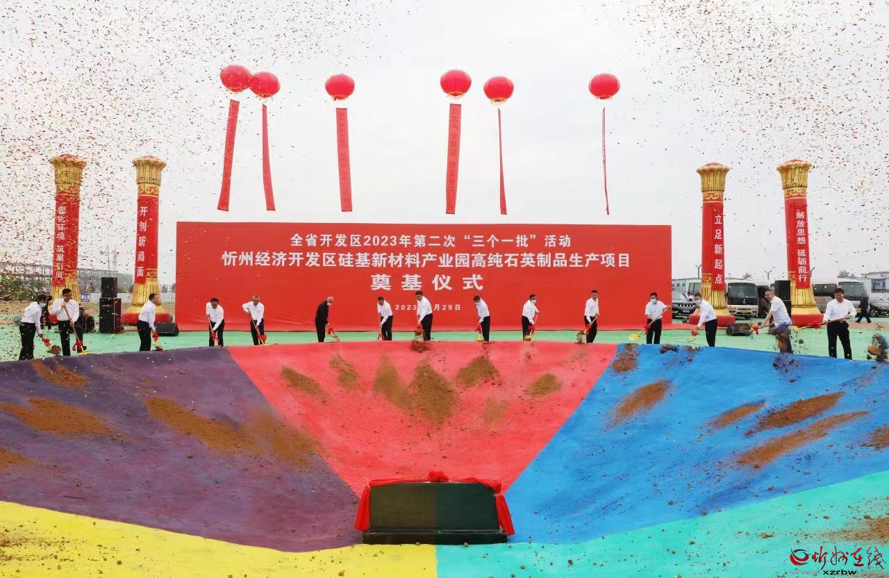 與省主會(huì)場同步,李建國主持舉行了忻州市“簽約一批”代表項(xiàng)目集中簽約活動(dòng)。忻州經(jīng)濟(jì)開發(fā)區(qū)特種硅基新材料智能生產(chǎn)項(xiàng)目、原平經(jīng)濟(jì)技術(shù)開發(fā)區(qū)污廢水處理環(huán)保成套設(shè)備及配套產(chǎn)品生產(chǎn)項(xiàng)目、繁峙經(jīng)濟(jì)技術(shù)開發(fā)區(qū)15萬千瓦光伏發(fā)電項(xiàng)目、定襄經(jīng)濟(jì)技術(shù)開發(fā)區(qū)無憂(山西)數(shù)字金融產(chǎn)業(yè)園項(xiàng)目、岢嵐經(jīng)濟(jì)技術(shù)開發(fā)區(qū)宇航固體動(dòng)力岢嵐試驗(yàn)中心項(xiàng)目、靜樂現(xiàn)代農(nóng)業(yè)產(chǎn)業(yè)示范區(qū)羊肚菌研發(fā)種植推廣實(shí)驗(yàn)基地建設(shè)項(xiàng)目、神池現(xiàn)代農(nóng)業(yè)產(chǎn)業(yè)示范區(qū)太平莊生態(tài)養(yǎng)殖示范基地建設(shè)項(xiàng)目、五臺現(xiàn)代農(nóng)業(yè)產(chǎn)業(yè)示范區(qū)植物蛋白飲品及休閑食品生產(chǎn)項(xiàng)目、五寨現(xiàn)代農(nóng)業(yè)產(chǎn)業(yè)示范區(qū)大辛莊繁育場項(xiàng)目、偏關(guān)生態(tài)文化旅游示范區(qū)生態(tài)農(nóng)業(yè)建設(shè)項(xiàng)目等10個(gè)代表項(xiàng)目分兩批進(jìn)行現(xiàn)場簽約。簽約儀式結(jié)束后,與會(huì)人員赴“開工一批”代表項(xiàng)目——“硅基新材料產(chǎn)業(yè)園高純石英制品生產(chǎn)建設(shè)項(xiàng)目”現(xiàn)場培土奠基。隨后赴重點(diǎn)建設(shè)項(xiàng)目——“10GW智能光伏電池生產(chǎn)基地項(xiàng)目”實(shí)地觀摩,該項(xiàng)目聚焦“奮戰(zhàn)7.30、8.30、9.28”目標(biāo),分階段確保項(xiàng)目竣工投產(chǎn)。