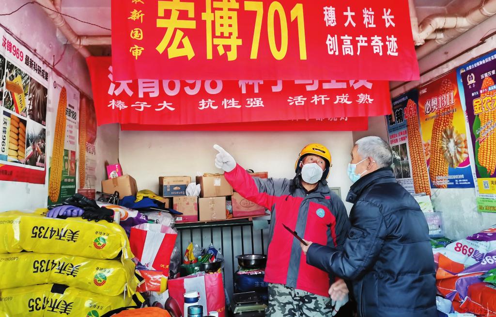 3月22日,忻府區(qū)董村農(nóng)民正在忻州城區(qū)健康東街一農(nóng)資店選購種子。天氣漸暖,我市各地加緊良種選育、購買農(nóng)資、修渠整地等工作,為春耕做足準(zhǔn)備。 (宮清華 攝)