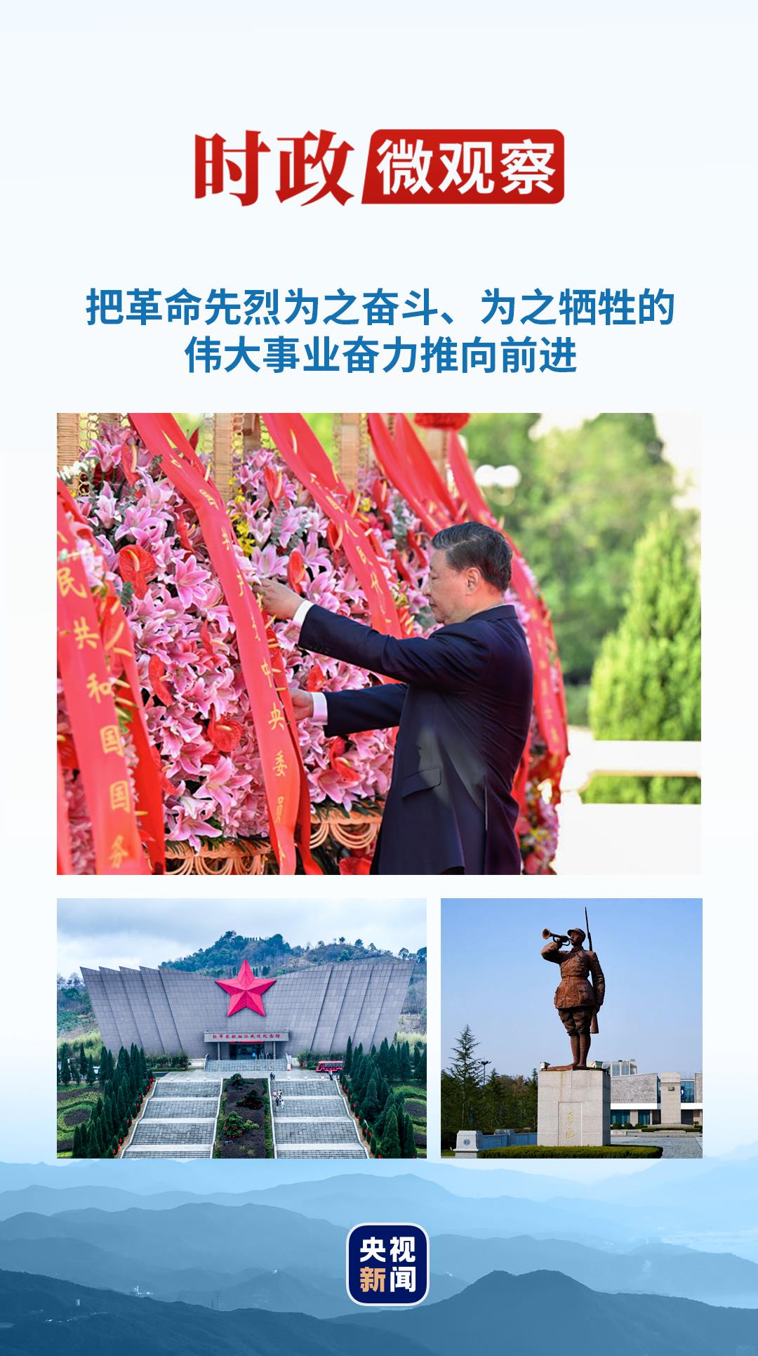 清明時(shí)節(jié),慎終追遠(yuǎn)。 在祭奠先人、寄托哀思之時(shí),我們永遠(yuǎn)不能忘記,那些為民族獨(dú)立解放、為國(guó)家繁榮富強(qiáng)作出奉獻(xiàn)和犧牲的英雄先烈。他們是中華民族的脊梁,他們的事跡和精神都是激勵(lì)我們前行的強(qiáng)大力量。 “每次來(lái)緬懷革命先烈,思想都受到洗禮,心靈都產(chǎn)生觸動(dòng)?!秉h的十八大以來(lái),習(xí)近平總書(shū)記以多種方式緬懷英雄先烈,謳歌民族英雄,激勵(lì)全黨全國(guó)各族人民傳承英烈精神,為強(qiáng)國(guó)建設(shè)、民族復(fù)興偉業(yè)而不懈奮斗。 銘記——永志不忘英烈們的偉大理想 江蘇鹽城,一片英雄熱土。83年前,新四軍軍部在這里浴火重生,繼續(xù)領(lǐng)導(dǎo)敵后抗日活動(dòng)。大革命時(shí)期以來(lái),1.8萬(wàn)余名革命先烈在這里獻(xiàn)出寶貴生命。 2023年12月3日,結(jié)束上??疾旆稻┩局?,習(xí)近平總書(shū)記來(lái)到鹽城參觀新四軍紀(jì)念館。館內(nèi)的照片、史料、文物、模擬實(shí)景,完整展現(xiàn)了新四軍浴火重生、浴血奮戰(zhàn)的光輝歷史。 步鳳鎮(zhèn)、學(xué)富鎮(zhèn)、正紅鎮(zhèn)、東平村……鹽城全市有128處以烈士名字命名的鎮(zhèn)村。人們將對(duì)烈士的紀(jì)念和緬懷寫(xiě)進(jìn)路標(biāo),畫(huà)入地圖,刻在心底。