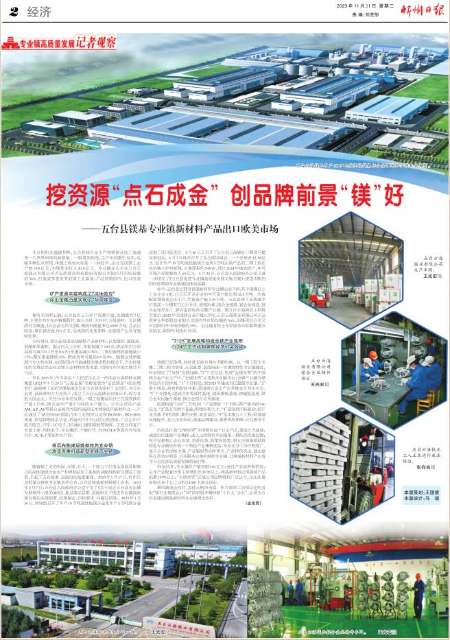 乘風(fēng)破浪會(huì)有時(shí),直掛云帆濟(jì)滄海。作為國(guó)家工信部認(rèn)定的首批“鎂行業(yè)規(guī)范企業(yè)”和“國(guó)家級(jí)專精特新‘小巨人’企業(yè)”,必將為五臺(tái)縣建設(shè)鎂基新材料專業(yè)鎮(zhèn)增光添彩。 (金俊賢)
