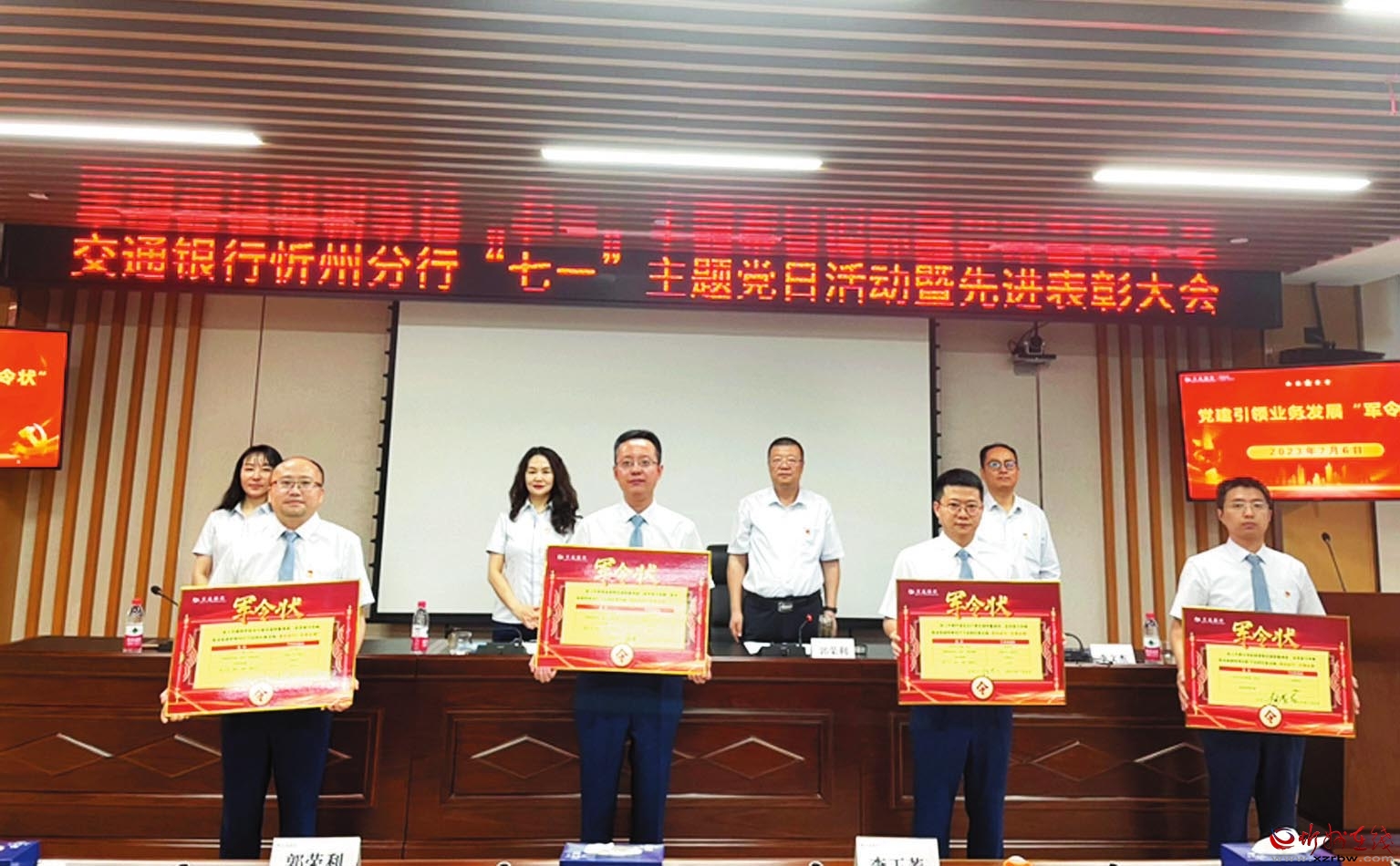 活動在莊嚴(yán)的國歌聲中開始,該行黨委書記帶領(lǐng)全體黨員及入黨積極分子重溫入黨誓詞,牢記黨員的初心和使命。會議為“兩優(yōu)一先”、部分先進(jìn)集體與先進(jìn)個人獲獎代表頒發(fā)獎牌和證書,激勵全行上下堅定信念、踔厲奮發(fā),在新時代新征程上彰顯新?lián)?dāng)、展現(xiàn)新作為。