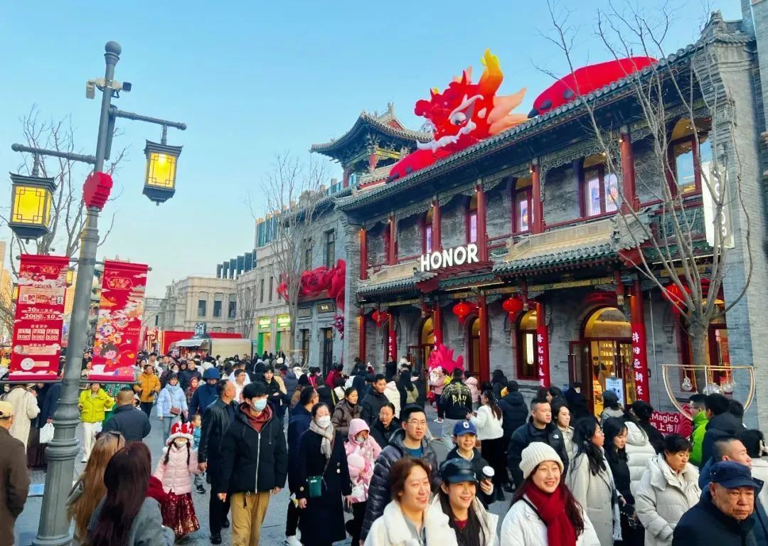 人們在陽泉記憶·1947文化園舉辦的2024新春游園會上打卡拍照