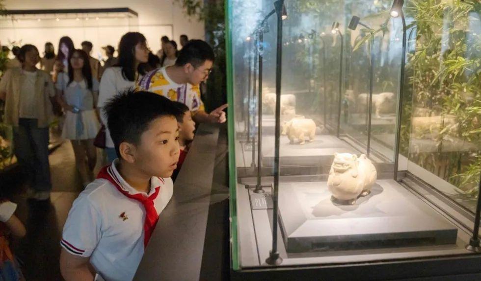 踏入博物館,從東晉的俑群、南朝的青瓷蓮花尊中,觀眾能感受到歷史的溫度;當(dāng)志愿者們聲情并茂地講述1000多年前的歷史時(shí),觀眾也被帶入到遙遠(yuǎn)的時(shí)空隧道中,與嵇康飲酒,與王羲之對(duì)話。