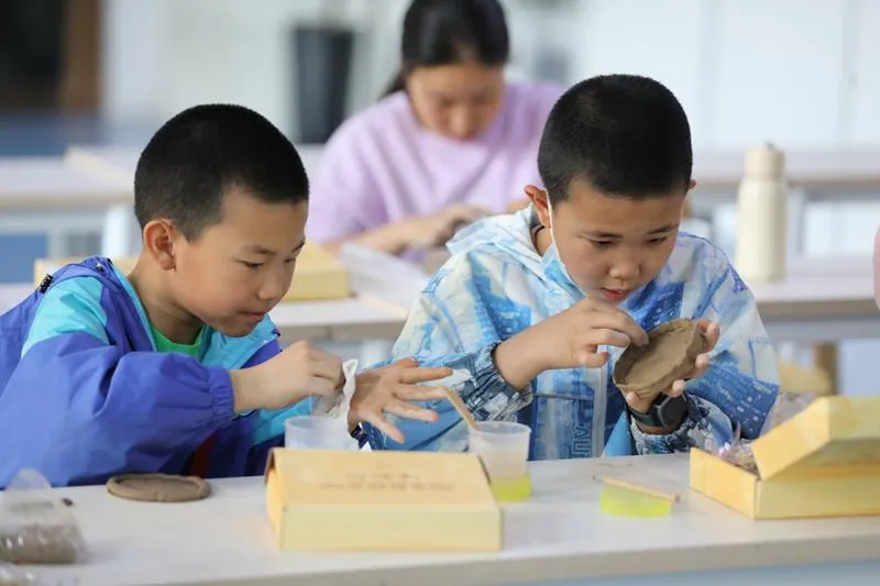 現(xiàn)場,一團陶泥在老師和同學(xué)們靈巧的手中變成一只可愛的小兔子、或一只造型美觀的花瓶。泥條盤筑是新石器時代手工制陶最常見的方法之一,此次制作體驗活動中,同學(xué)們通過了解陶器制作技術(shù),并結(jié)合泥條盤筑動手體驗,感受到幾千年前古人的勞動技能,體驗古老的制陶工藝。