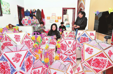 ②平定縣宋家莊村村民制作傳統(tǒng)燈籠,迎接元宵佳節(jié)。劉勝攝