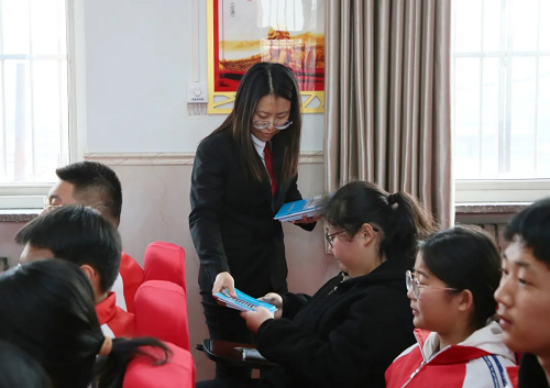 沱陽中學(xué)是新中國開國元帥徐向前的母校,創(chuàng)辦于1905年,從清朝末年至今,已度過一百多個春秋,因?qū)W校坐落在滹沱河北畔而得名?;顒蝇F(xiàn)場,屋外天寒地凍,會場內(nèi)卻熱潮涌動,同學(xué)們整齊落座,閃爍著好奇的目光,第一次和法院法官“零距離”接觸,顯得既興奮又緊張。