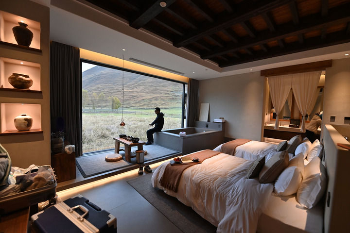 2025年10月31日,在四川省甘孜州康定市新都橋鎮(zhèn),來(lái)自浙江的游客在贊巴·明境民宿酒店的房間里休息。新華社記者 肖瀟 攝